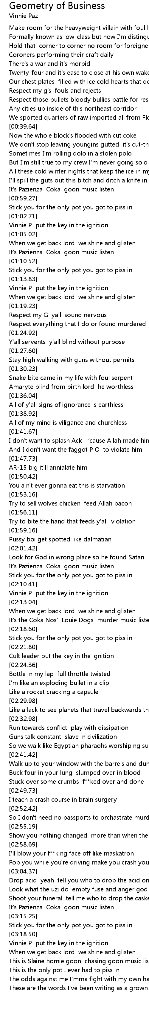| [03:24.44] | This is Slaine homie goon chasing goon music listen |