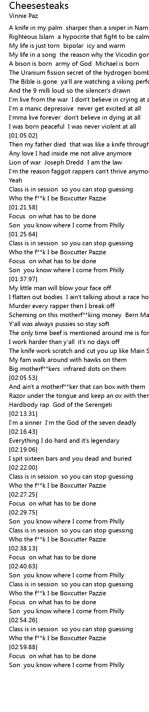 Who the f**k I be Boxcutter Pazzie |