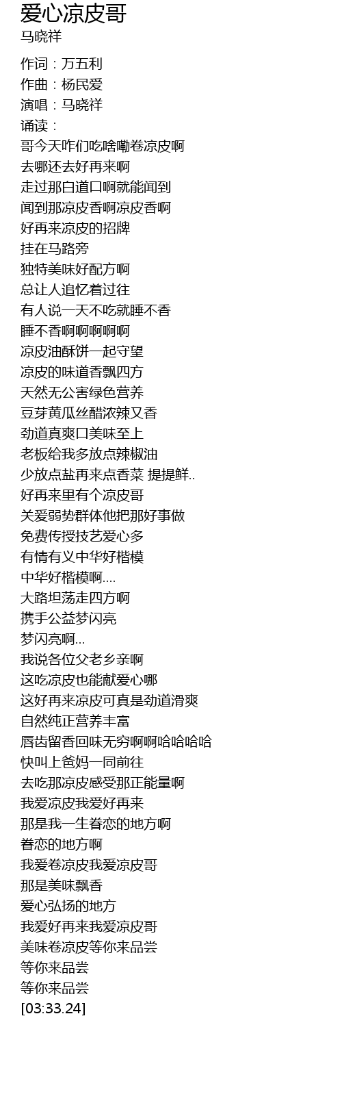 | [03:04.13] | 我爱卷凉皮我爱凉皮哥 |