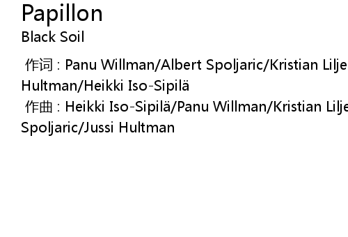 | [00:00.00-1] | 作词 : Panu Willman/Albert Spoljaric/Kristian Liljelund/Jussi Hultman/Heikki Iso-Sipilä |