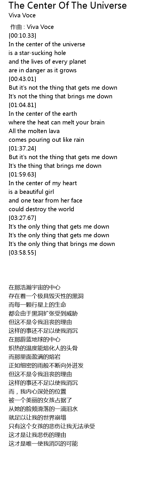 | [00:12.68] | In the center of the universe |