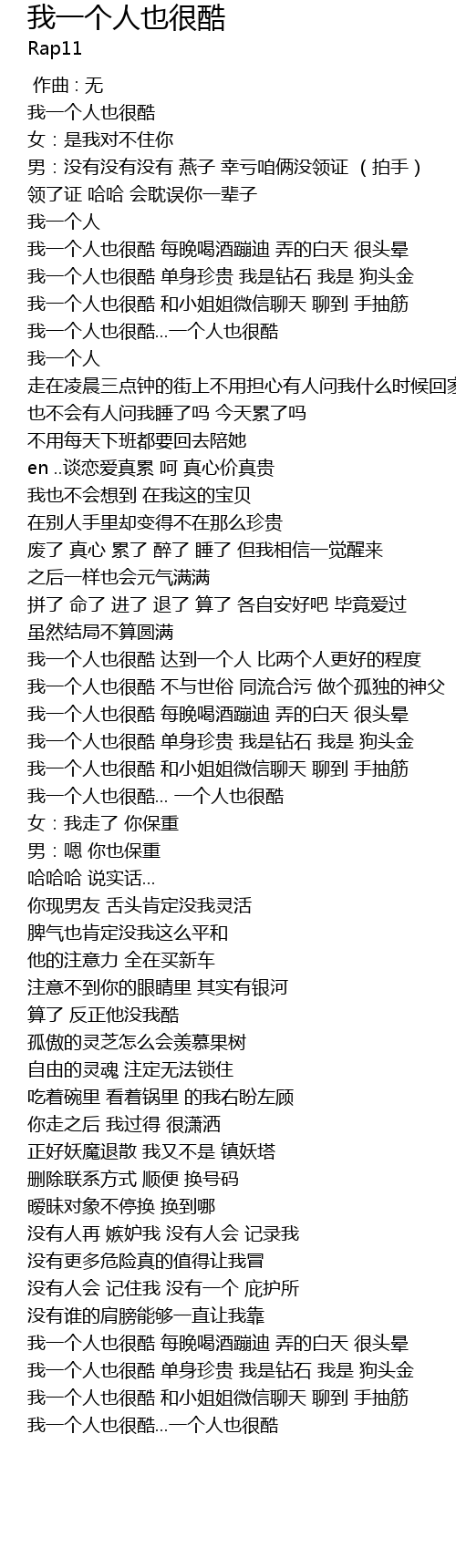 | [01:17.677] | 我一个人也很酷 单身珍贵 我是钻石 我是 狗头金 |