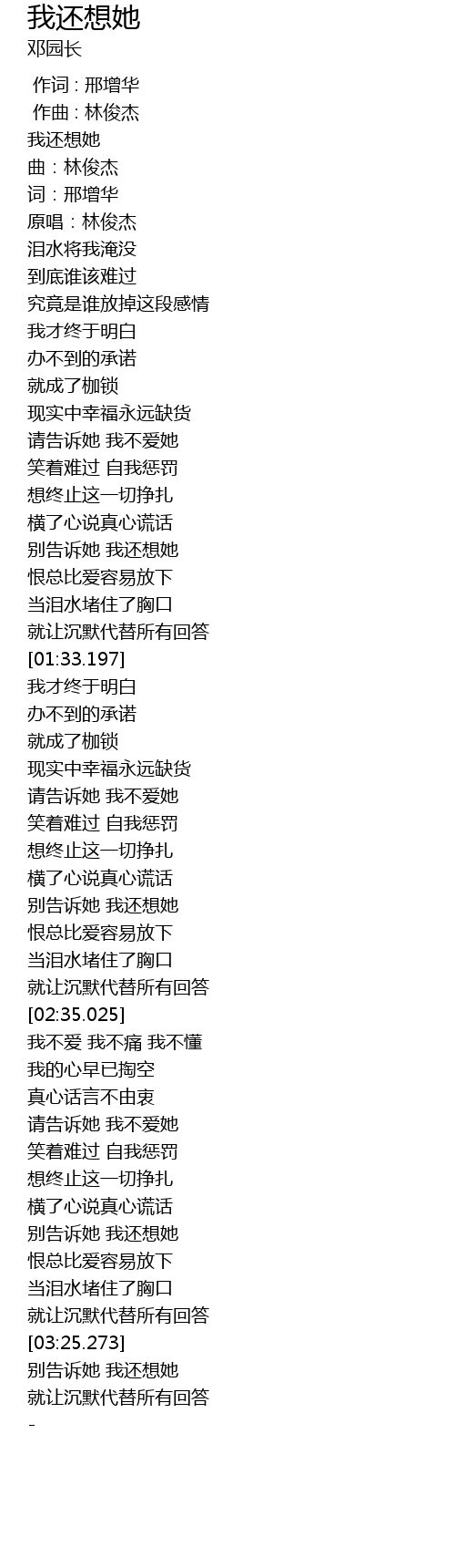 | [03:25.528] | 别告诉她 我还想她 |