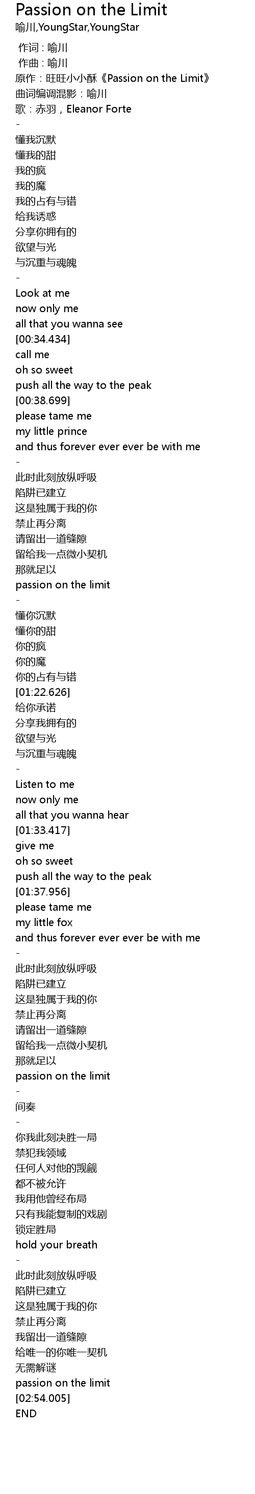 | [00:00.000] | 原作:旺旺小小酥《Passion on the Limit》 |