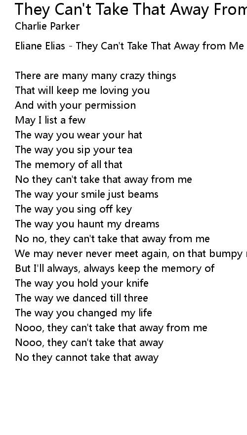 No they can't take that away from me |