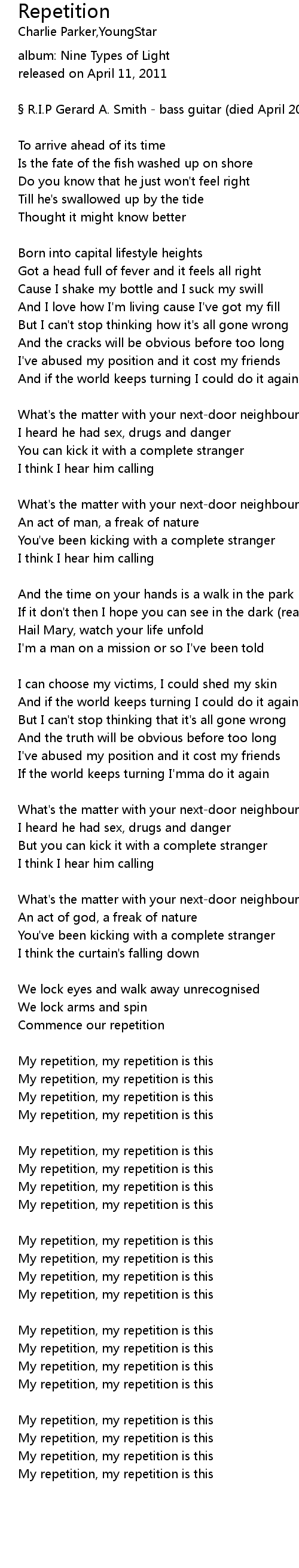 | My repetition, my repetition is this | |