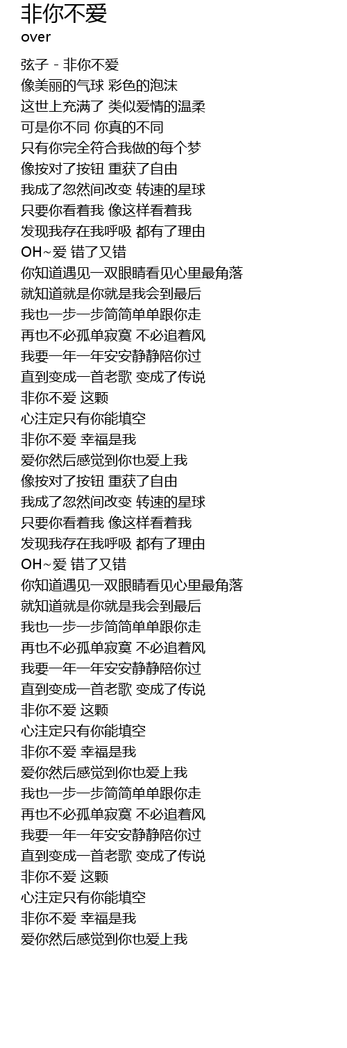 | [01:39.670] | fēi nǐ bù ài xìng fú shì wǒ |