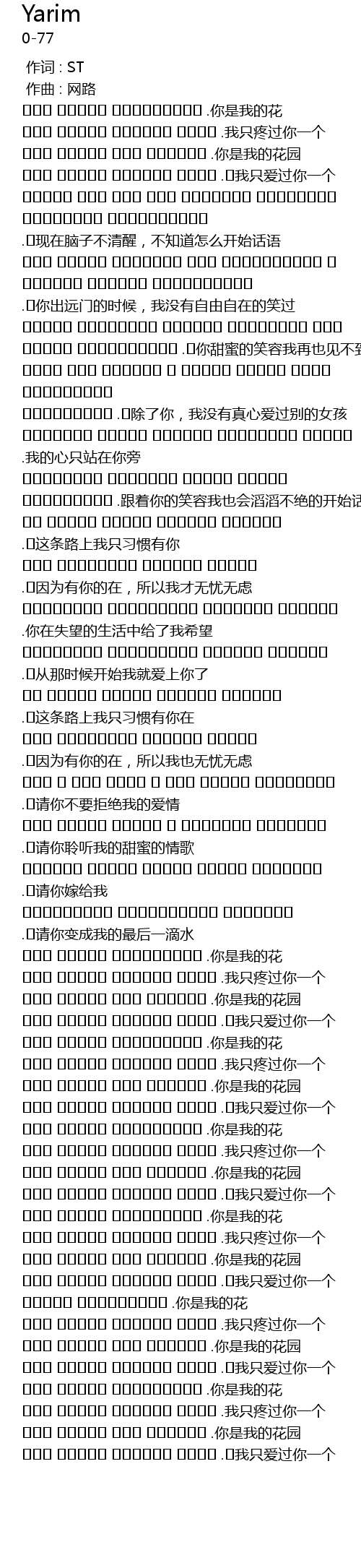 | [02:59.694] | سەن مېنىڭ سۆيگەن يارى .我只爱过你一个 |