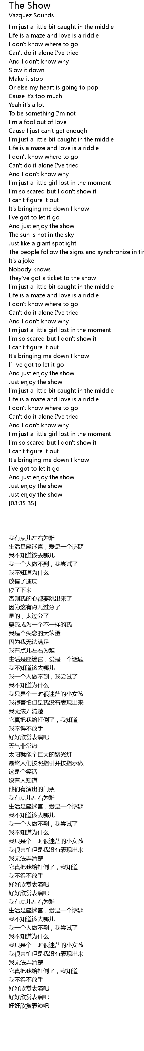 | [00:47.02] | I'm just a little bit caught in the middle |