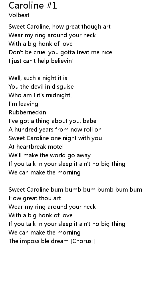 Sweet Caroline, how great though art |