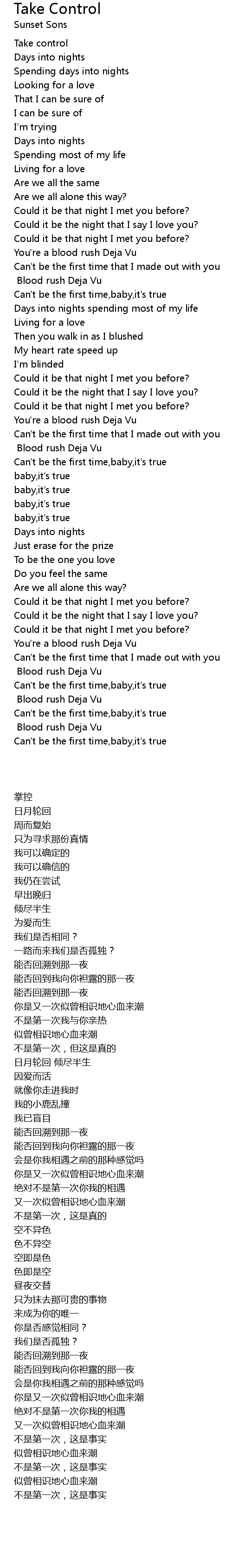 Take Control Lyrics
