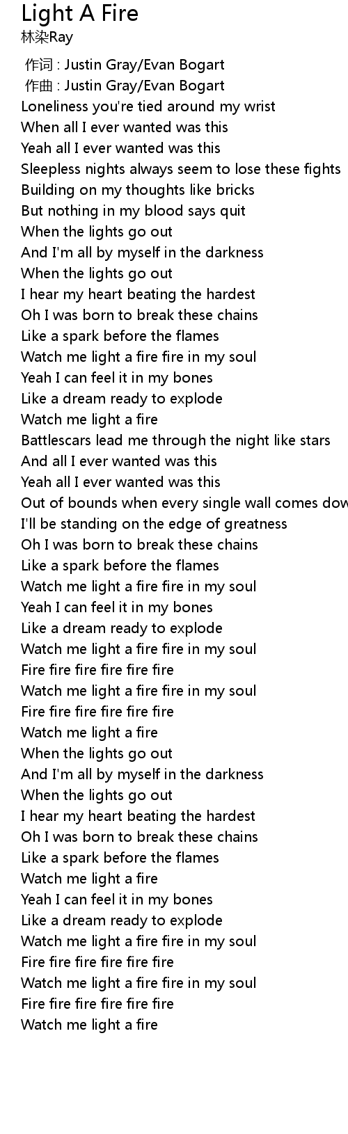 | [01:11.76] | Watch me light a fire |
