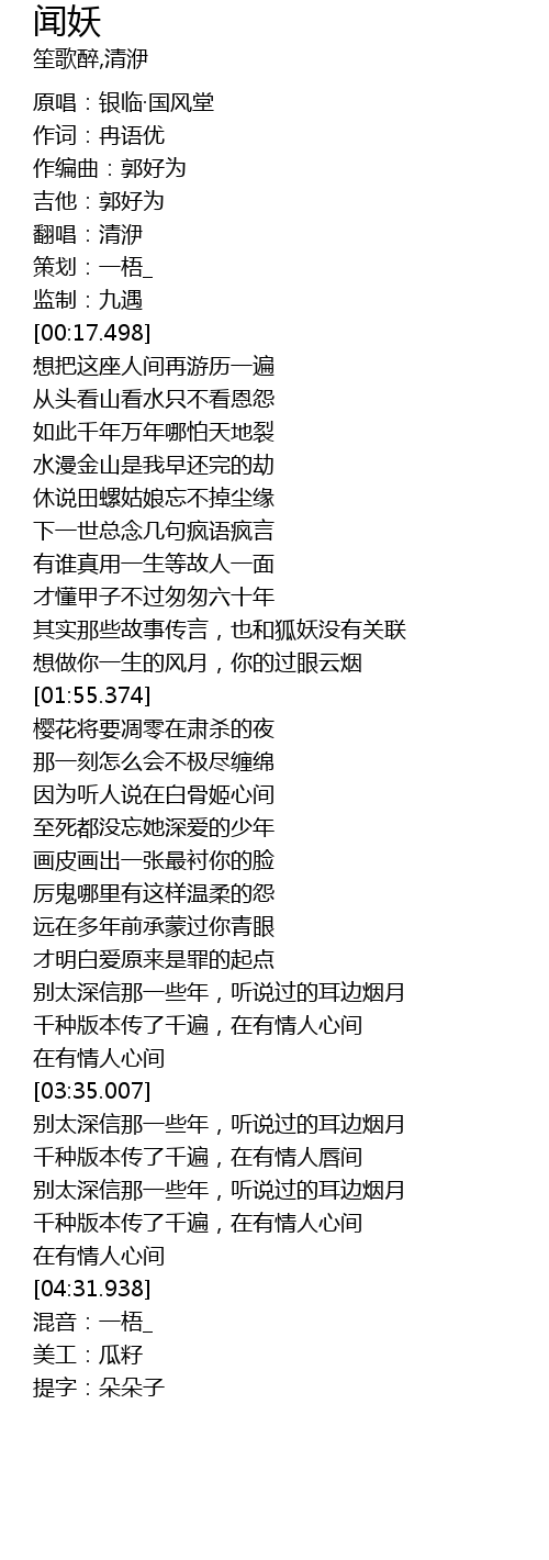 | [01:30.340] | 其实那些故事传言,也和狐妖没有关联 |