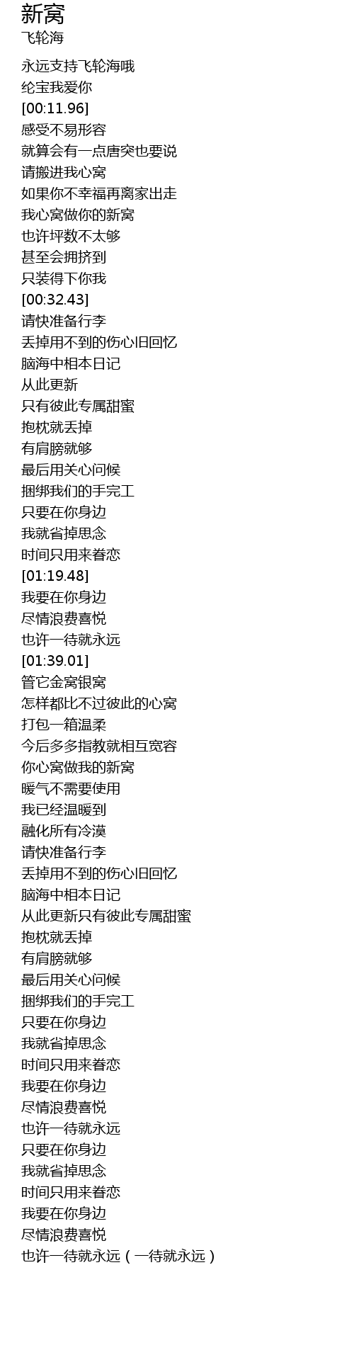 | [02:01.17] | nǐ xīn wō zuò wǒ de xīn wō |