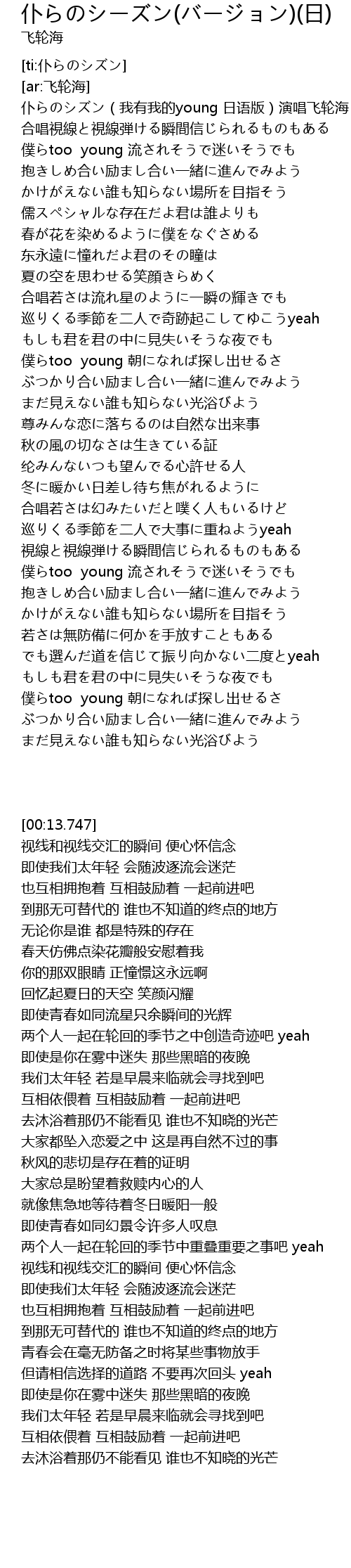 | [00:13.747] | 仆らのシズン(我有我的young 日语版)演唱飞轮海 |