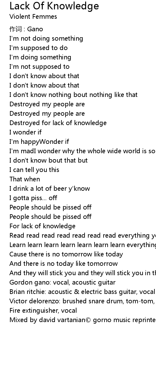 | Song | Lack Of Knowledge |