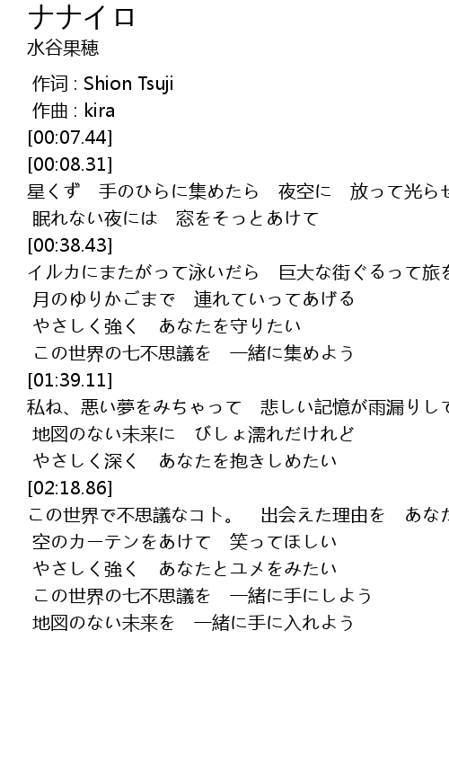 | [02:58.44] | この世界の七不思議を 一緒に手にしよう |