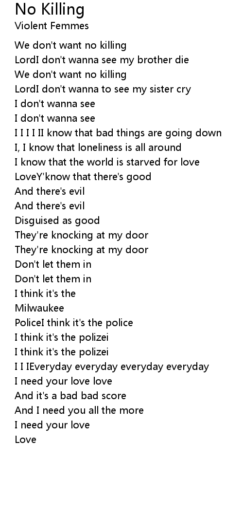 We don't want no killing |