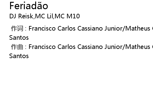 | [00:00.00-1] | 作词 : Francisco Carlos Cassiano Junior/Matheus Custodio dos Santos |