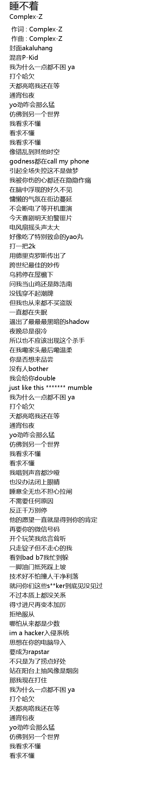| [00:00.000] | 作词 : Complex-Z |