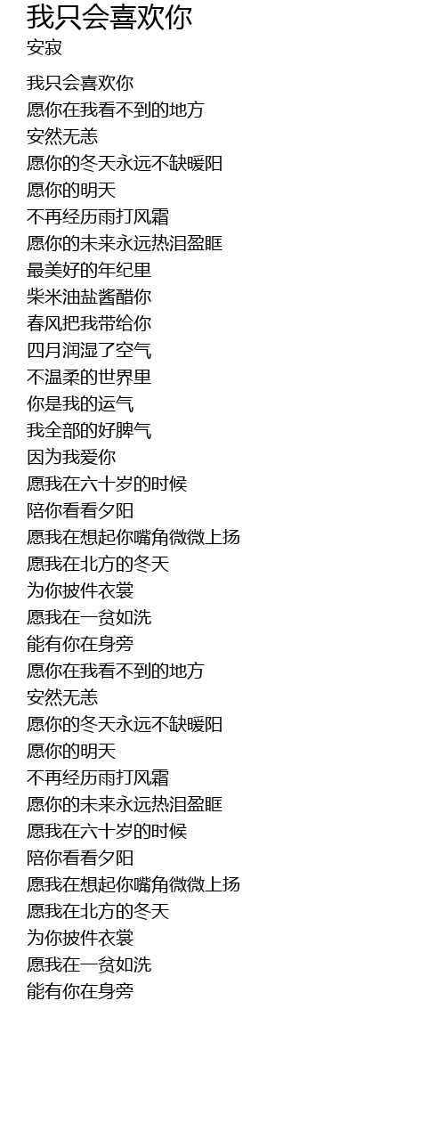 | [00:01.228] | wǒ zhǐ huì xǐ huān nǐ |