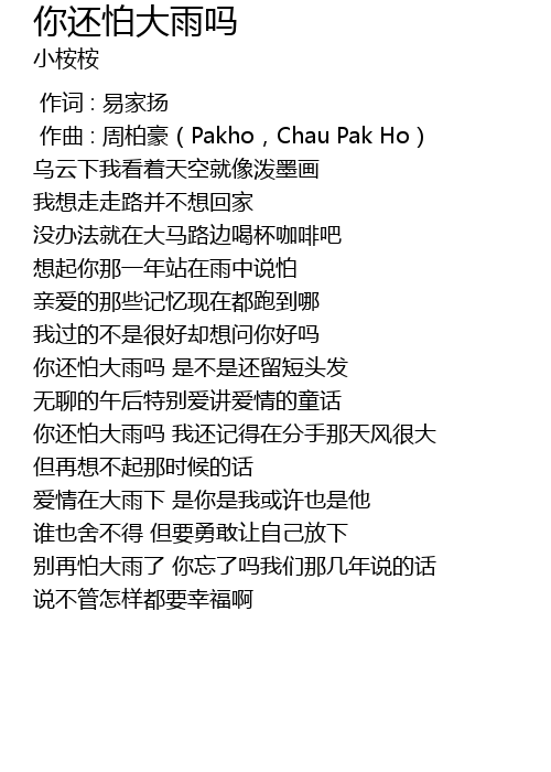 | [00:00.310] | zuo qu : zhou bai hao Pakho, Chau Pak Ho |