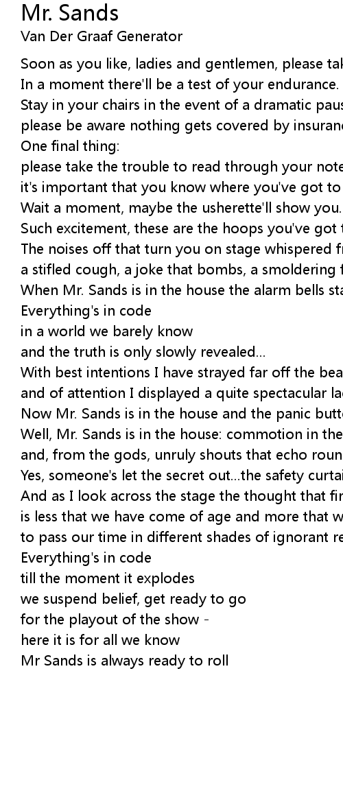 When Mr. Sands is in the house the alarm bells start to ring. |