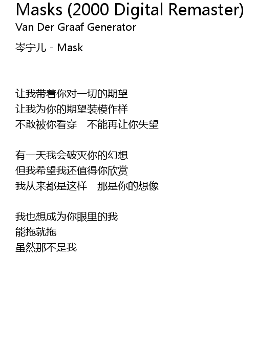 | Song | Masks (2000 Digital Remaster) |