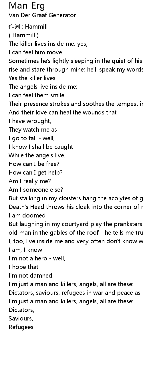 | I' m just a man and killers, angels, all are these: | |