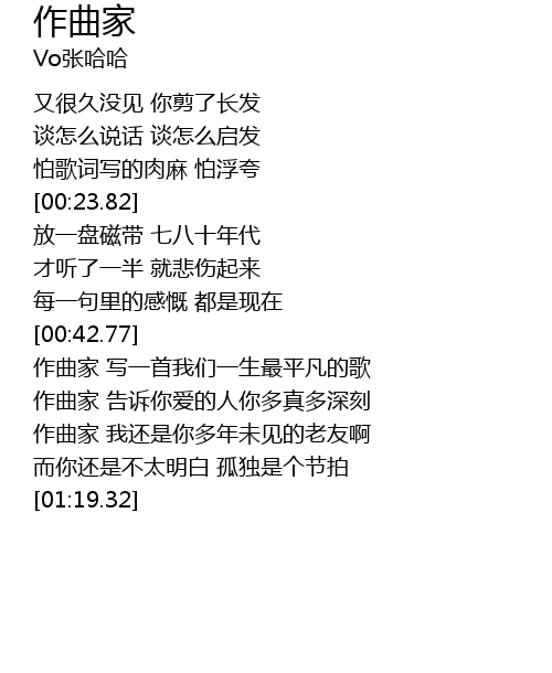 | [00:44.36] | 作曲家 写一首我们一生最平凡的歌 |