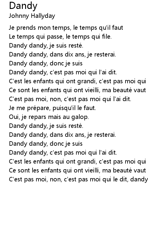 | Dandy dandy, c' est pas moi qui l' ai dit. | |