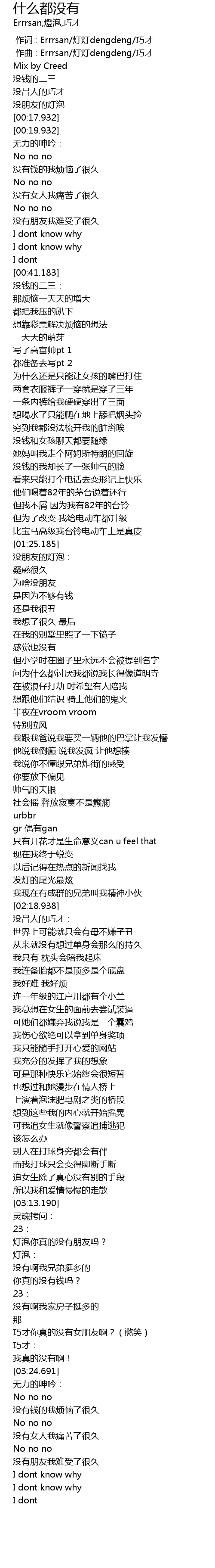 | [03:23.691] | wǒ zhēn de méi yǒu a! |