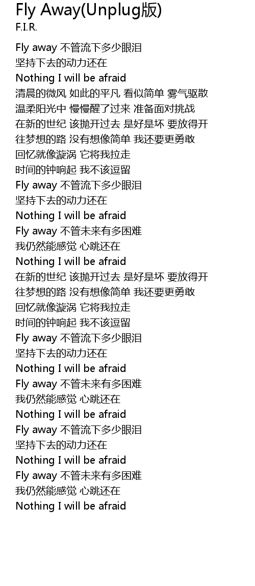 | [03:30.210] | Fly away bù guǎn wèi lái yǒu duō kùn nán |