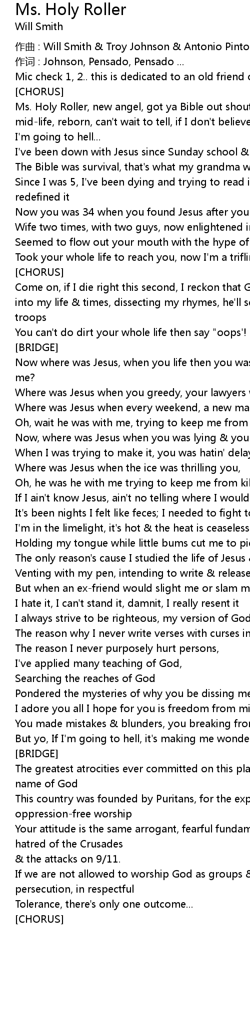 | Song | Ms. Holy Roller |