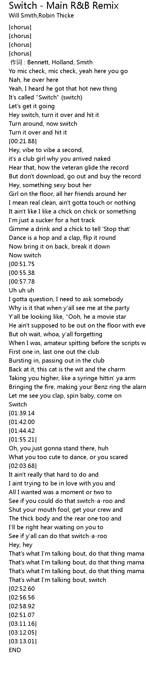| [01:00.82][00:51.75] | Hey switch, turn it over and hit it |
