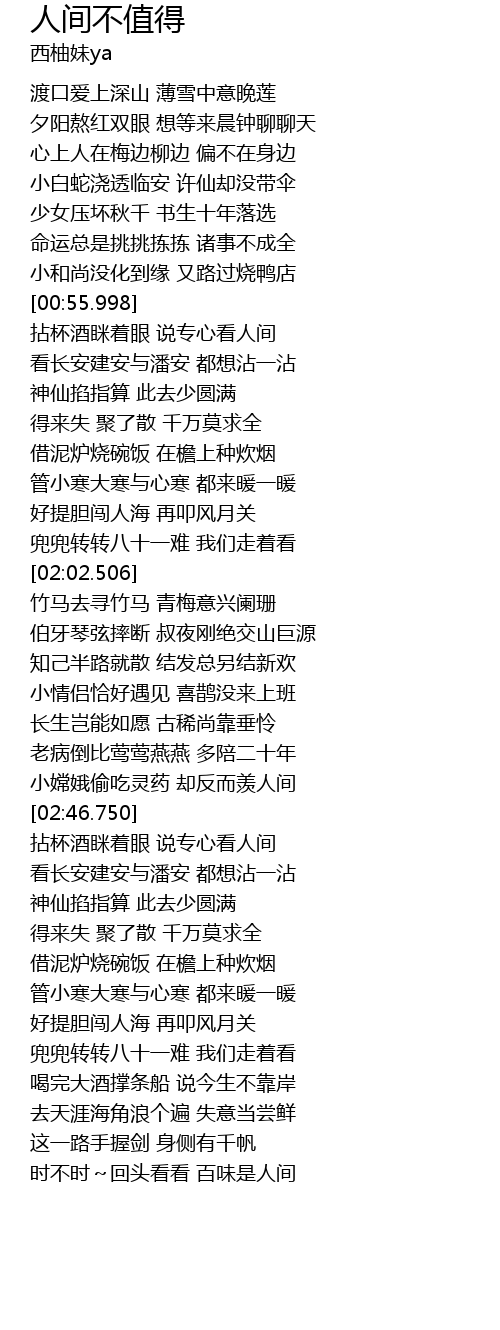 | [02:41.002] | xiao chang e tou chi ling yao que fan er xian ren jian |