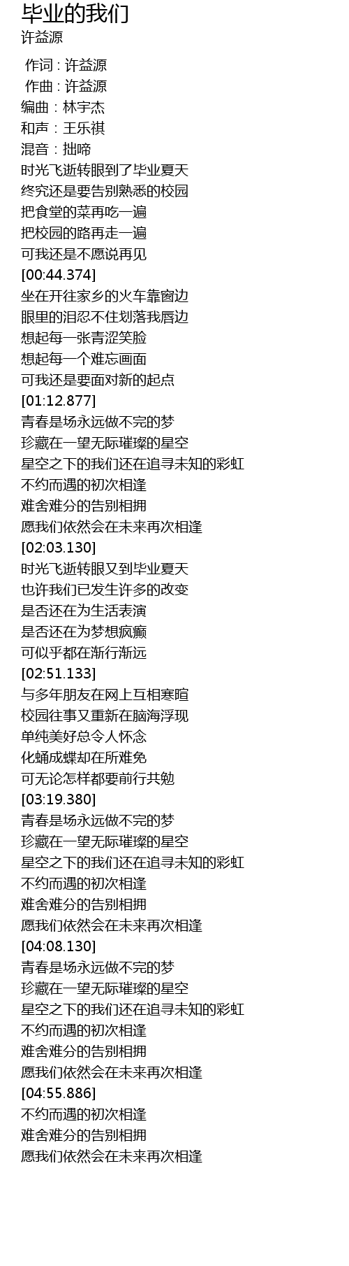 | [02:29.629] | 时光飞逝转眼又到毕业夏天 |