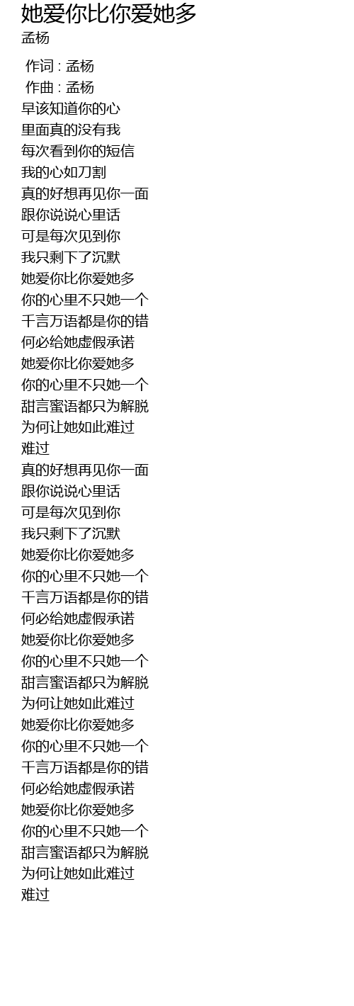 | [02:50.25] | tā ài nǐ bǐ nǐ ài tā duō |