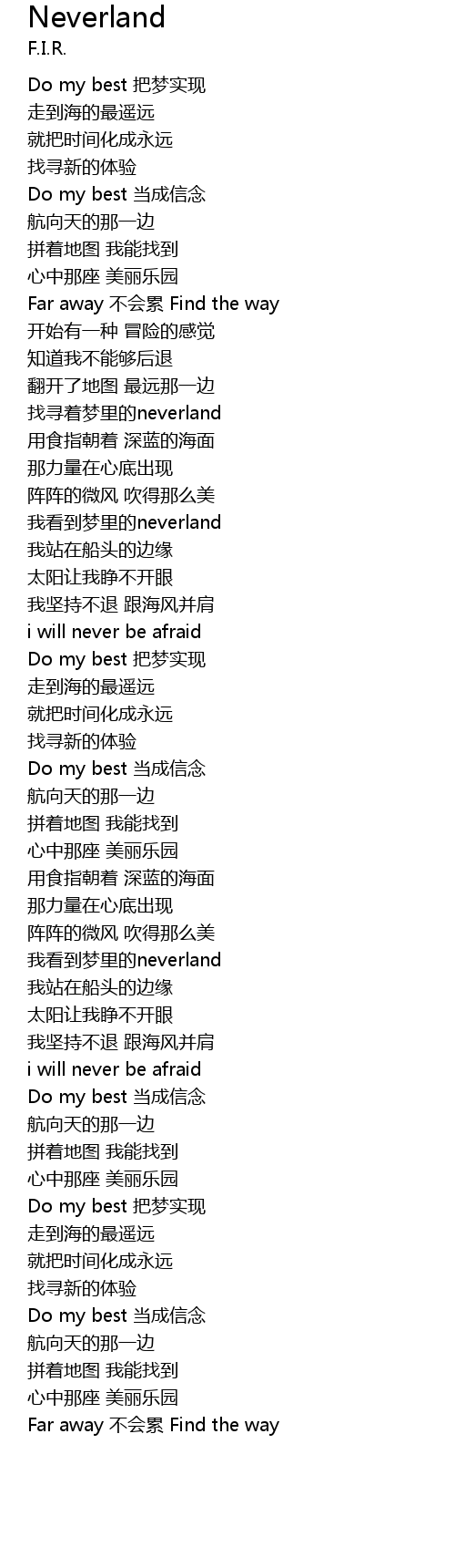 | [03:21.000] | Do my best 把梦实现 |