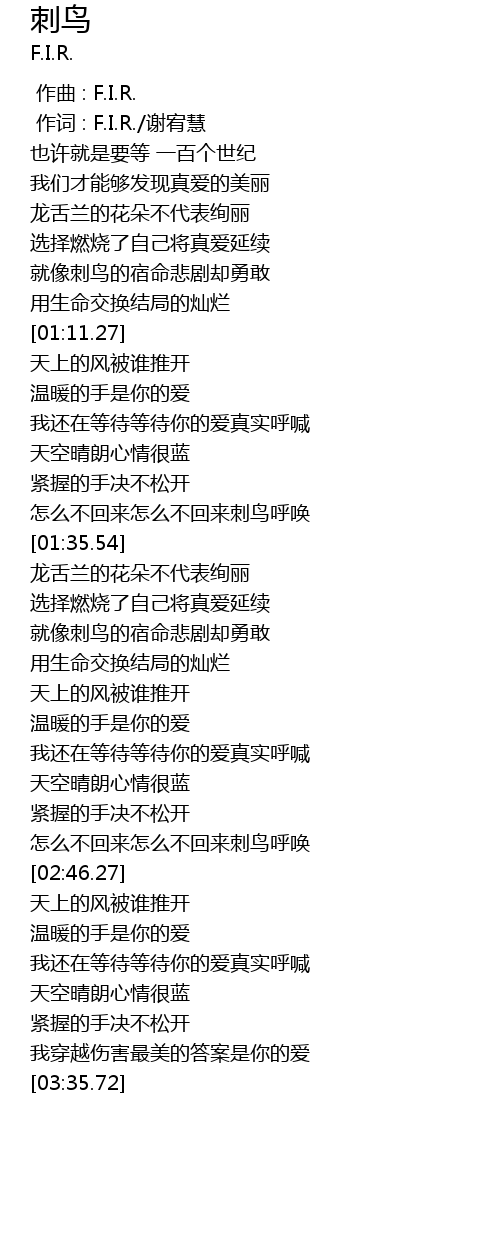 | [00:00.00] | 作曲 : F.I.R. |