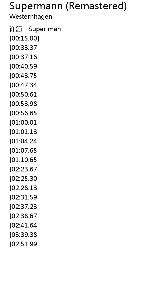 | [01:49.84][00:40.59] | 我说我需要一个SUPERMAN |