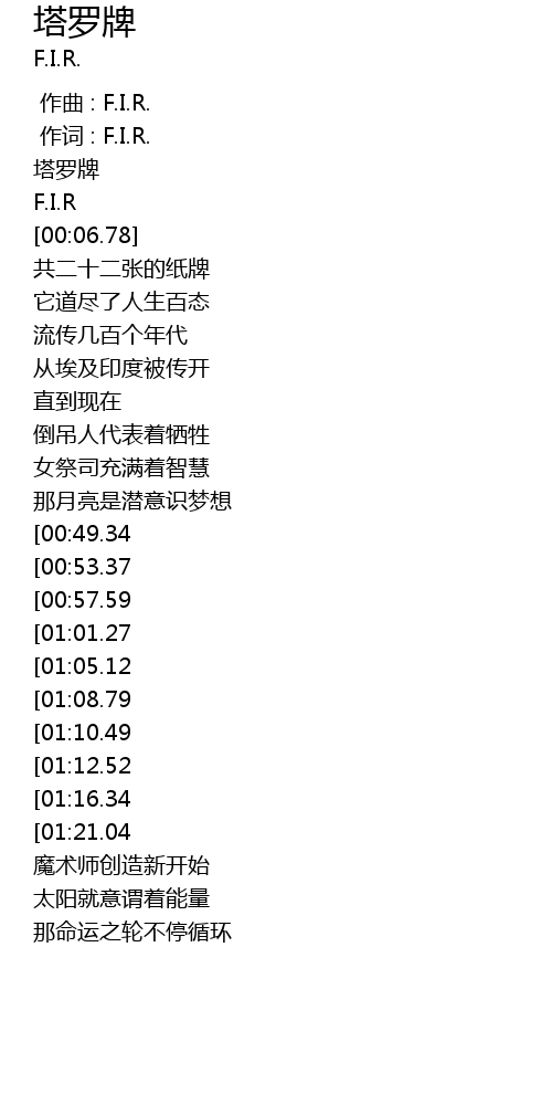 | [02:01.60][01:05.12] | 多无奈塔罗牌 |