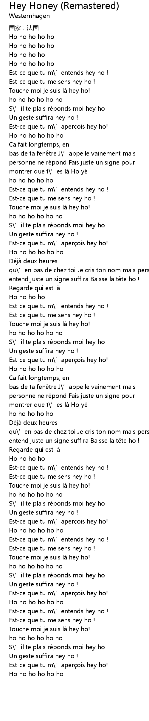 | [03:47.62] | S' il te plais re ponds moi hey ho |