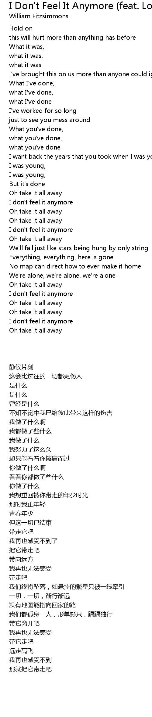 I Don't Feel It Anymore (feat. Loane) Lyrics