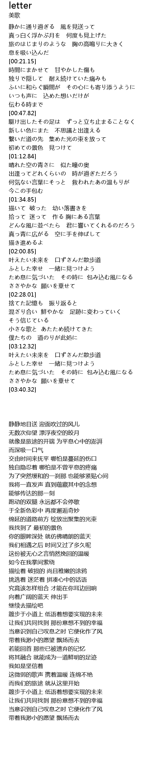 | [03:15.15] | 叶えたい未来を 口ずさんだ散歩道 |