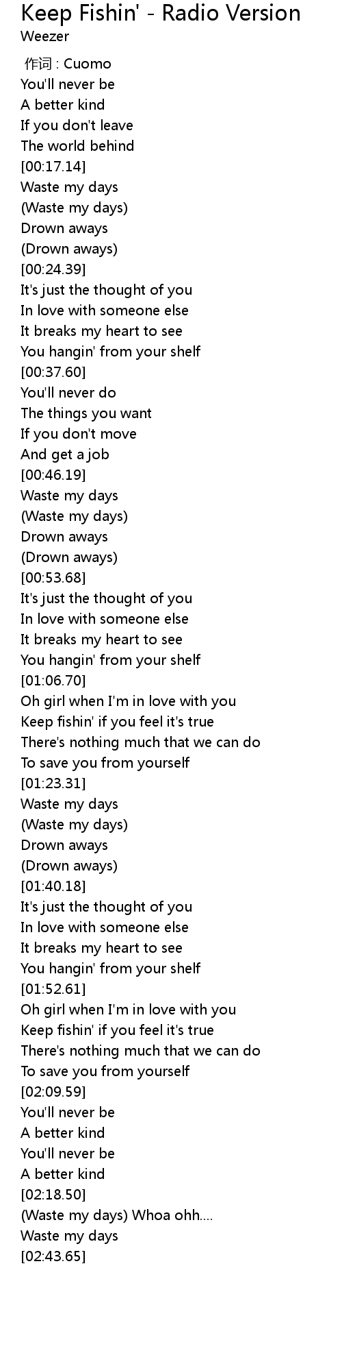 | [01:59.45] | Keep fishin' if you feel it's true |