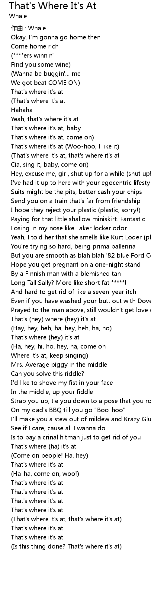 | [01:29.971] | That's (hey) where (hey) it's at |