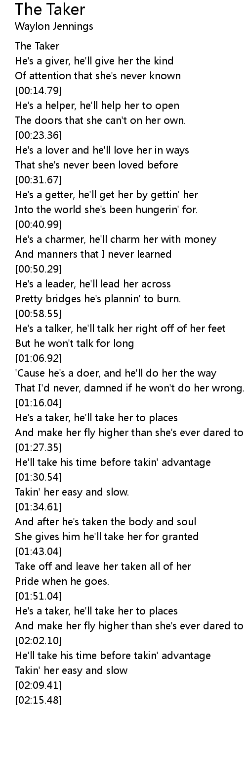 [01:11.98] That I'd never, damned if he won't do her wrong.