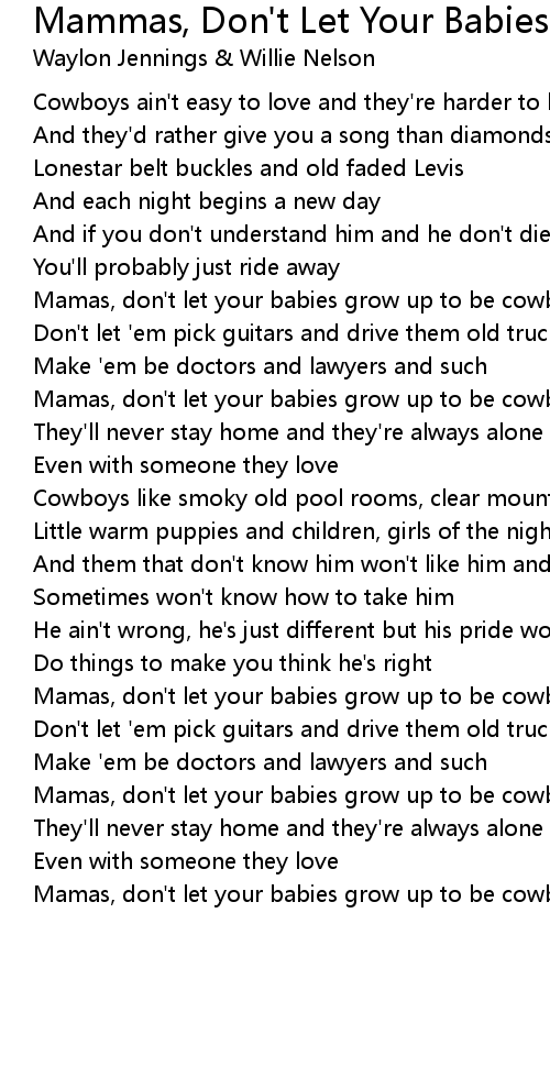 Song Mammas, Don't Let Your Babies Grow Up To Be Cowboys