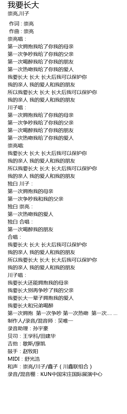 | [01:53.77] | 我要长大 长大 长大后我可以保护你 |